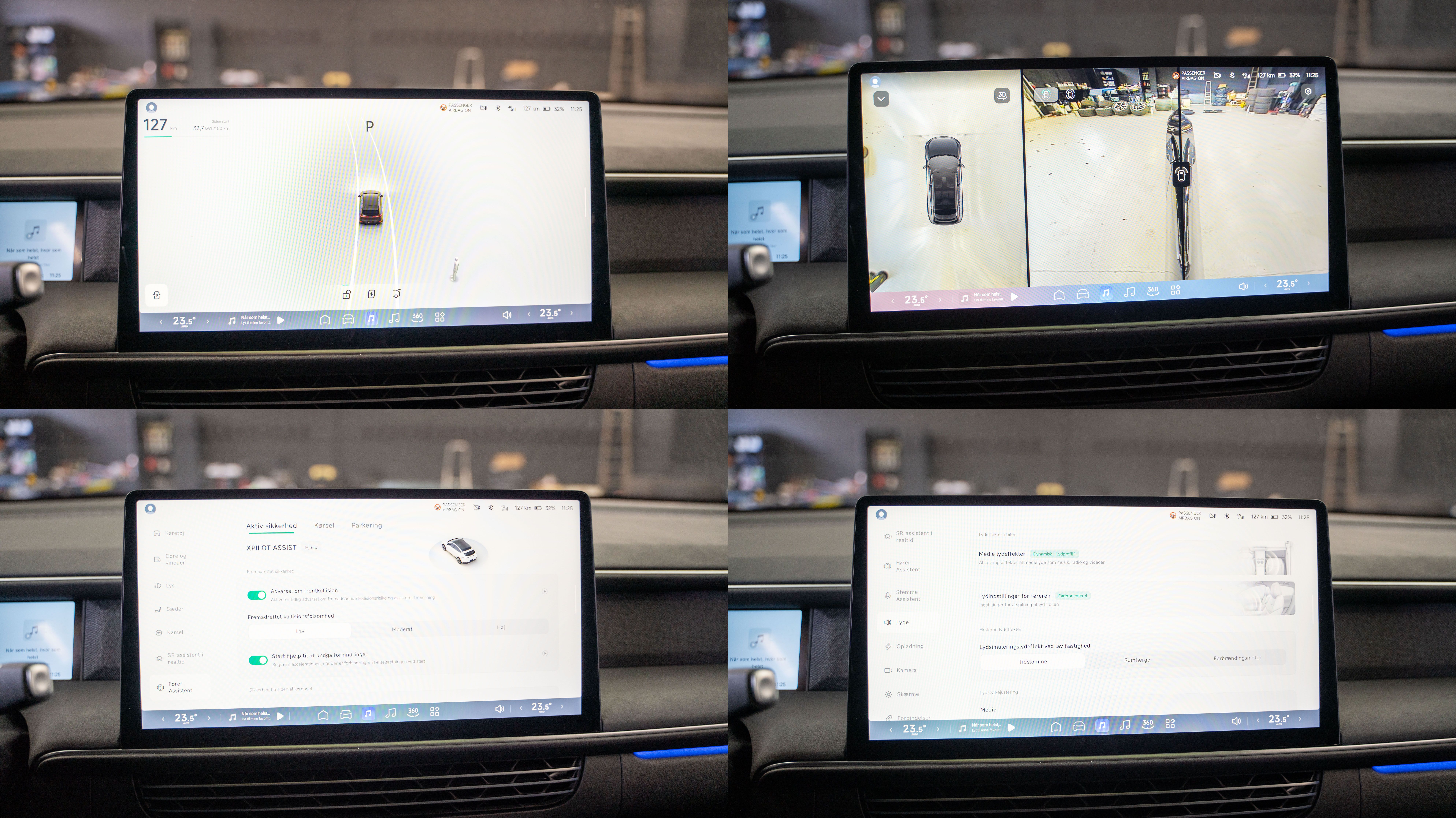 🛡 Sikkerhed & assistentsystemer Adaptiv fartpilot Vognbaneassistent Blindvinkelsassistent 360° kamera Bakkamera Parkeringssensor for & bag Fjernlysassistent Trafikkamera ESP & alarm ISOFIX til børnesæder